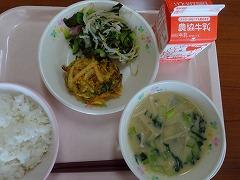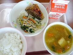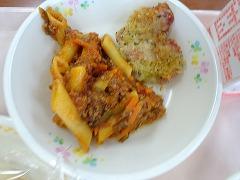 ↓今日の給食は、フォカッチャ、イタリアンカツレツ、ペンネのボロネーゼ、ミルファンティメニューのイタリアンです。きれいな色合いです。おいしくいただきました。