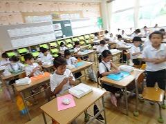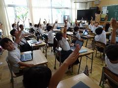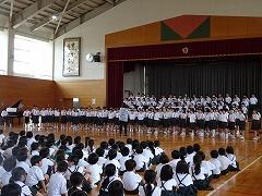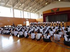 ↑地域の方からは、「もし避難所に行かなくてはいけなくなったら、この条南小学校の避難所に絶対来たいです」「歌を歌ってくれて、心が明るくなりました」「旅行の会話ができて、元気が出てきました。」など、子供たちのおかげで元気が出たと言ってくださいました。