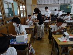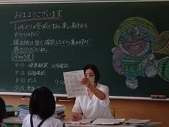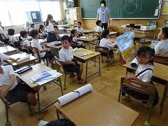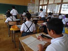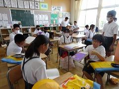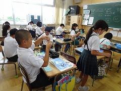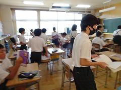 ↓各教室で宿題を提出して、先生や友達と夏休みの話をしました。
