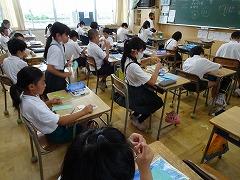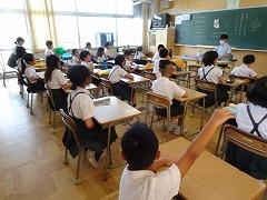 ↓7月の歌は「おりづる」でした。折り鶴にまつわる佐々木貞子さんのお話をしました。平和を守るために今私たちができること、それは、思いやりを持って相手に接すること、児童会が作った条南っ子クリアファイルにある「いじめゼロ」をみんなで目指していきましょう。さて、夏休み、自分を高めるために、日頃したいと思っていたことは何ですか。引き出しを作って、挙げてみましょう。そして、じっくりそのことと向かい合ってください。