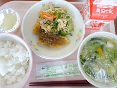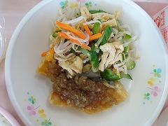 ↑1学期最終の給食は、冷やしうどんでした。ひじきの炒め煮、いんげんの入った野菜のかき揚げもありました。おいしい給食、ごちそうさまでした。