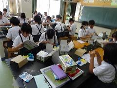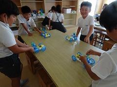 ↓4年理科 電池で動く車を組み立てました。