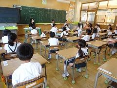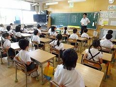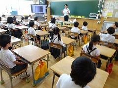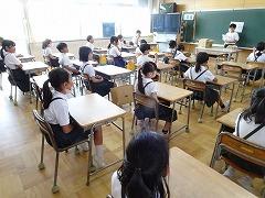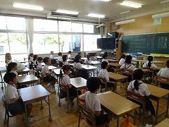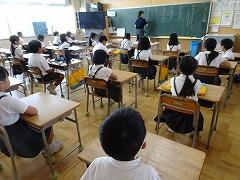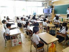 ↓1年生も立派です。よい姿勢で、先生のお話をしっかり聞いています。
