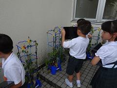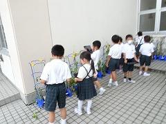 ↓1年生のあさがおが涼しそうに咲いています。写真を撮って、観察記録を作っています。
