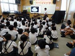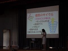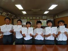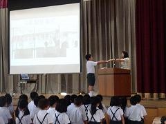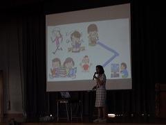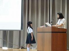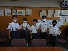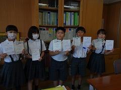 読書賞の表彰をしました。一番たくさん本を読んだ学級は2年1組さんでした。おめでとうございます。全校で一番たくさん本を読んだ多読賞、それから、学年目標の冊数を達成した学年を表彰や紹介をしました。夏休みも本をたくさん読んで、いろいろな本の世界を冒険してください。