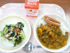 ↓今日の給食は、にんにくの香り高い夏野菜カレーでした。