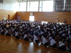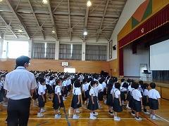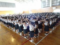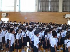 ↑全校で、声高らかに校歌を歌いました。体育館中に全校の声が響きました。全校で歌う校歌は、本当に素晴らしいです。みんな頑張ったので、とてもよい1学期終業式となりました。