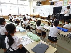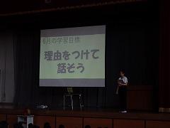 ↑6月の生活目標「正しい言葉づかいをしよう」について振り返り、7月の「クラスのみんなにナイスを伝えよう」についてお話しました。よいところをたくさん伝え合い、心のエネルギーを満タンにして、7月を過ごしましょう。
