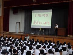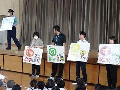 ↑安全のお話です。「いかのおすし」、子供だけではお店に行かない、おごったりおごられたりしないことについてお話しました。