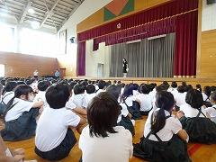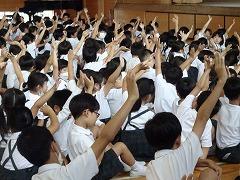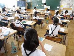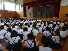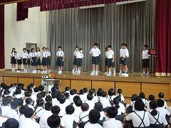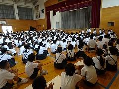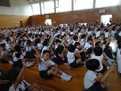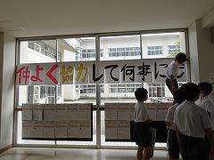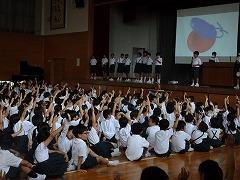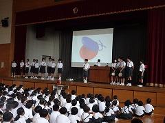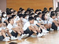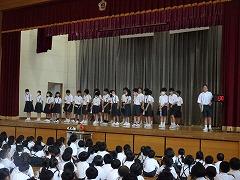 ↑6月はいろいろな行事がありましたが、町音楽会に向けて、「この行事が終わったらどんな人になっていたいか」ということを考えて練習していたそうです。全力で挑む人になりたい、だから全力で練習を行う、仲よく絆を深めていたい、だから、振り返りの話し合いでは、積極的に話し、自分の力を出し切るなど、練習にも目的を持って参加していました。行事を通して、どんどん成長する姿をうれしく思います。だから、音楽集会は大成功であったことを、全校に紹介しました。6年生の宿泊体験学習も同様です。時間を守り、ルールを守り、絆を深め合うことができました。