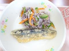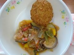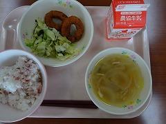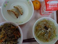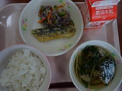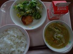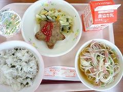 ↓今日の給食は、だし巻き卵、野菜の味噌汁、豚丼でした。夏バテ防止メニューです。たくさんの食材をいただきました。ごちそうさまでした。