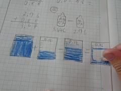 ↓4年算数 小数の大きさを比べる方法を考えました。数直線や位で比べる方法など、いろいろ試してみました。