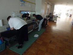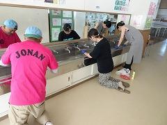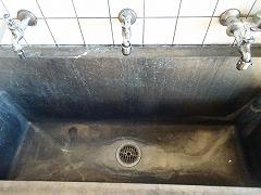 学校内の手洗い場に墨や水垢が付着し、なかなか落ちないので、PTA会長さんをはじめ、PTA環境部の方々のお力を貸していただきました。