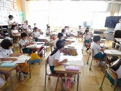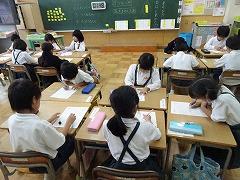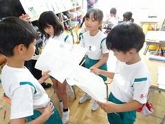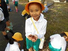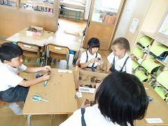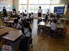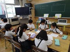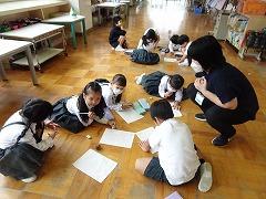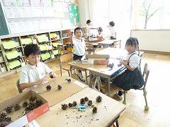 ↓1年生活科 秋見つけをしたをしたものから、楽しみたい遊びを考えていく授業です。いろいろな遊びをわけを付けながら話していました。
