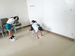 ↓黙々掃除 雑巾を整理したり、ごみを拾ったりして、時間いっぱいきれいに掃除をしている姿は、ナイスです。