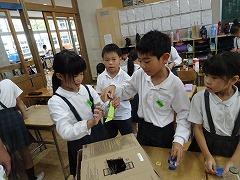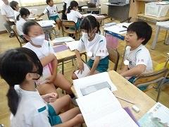 ↓6年理科 月の形が日によって変わって見えるのはどうしてか、モデル実験の結果を動画で撮影したものを見て考え、班で話し合いました。