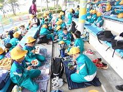 ↓3年体育 ラインサッカー チームで楽しめる作戦を選び、ゲーム1を行い、振り返り、練習をして、ゲーム2を行いました。