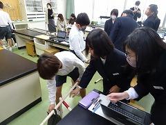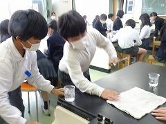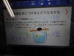 ↓5年理科 食塩は水に入れるとどうなるのかな。観察して気づいたことをクロムに書き込み、水の中に食塩はあるのか確かめる実験方法を話し合いました。