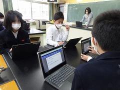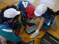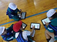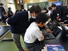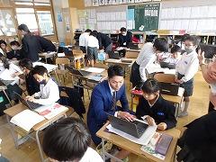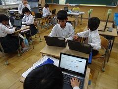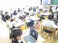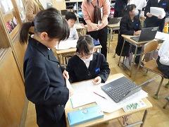 ↓1年 ともだちが書いた文章をクロムブックで読んでいます。