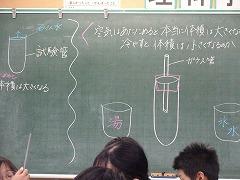 ↓4年 理科 水の体積は、温めたり冷やしたりするとどのように変化するか、実験しようとしています。