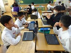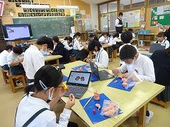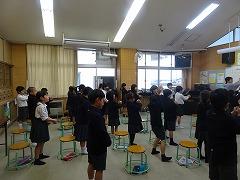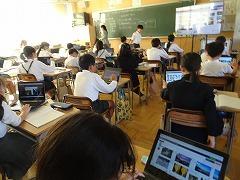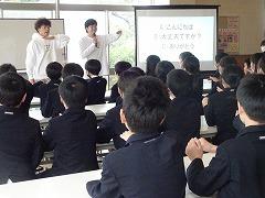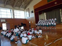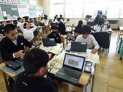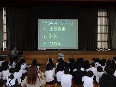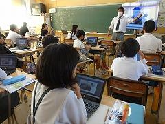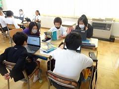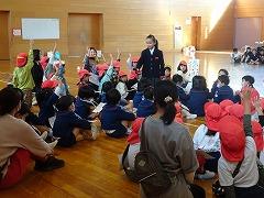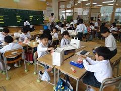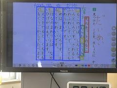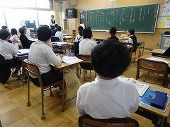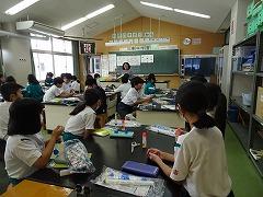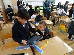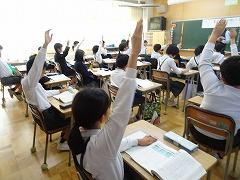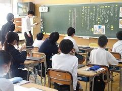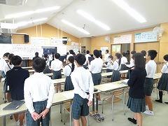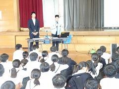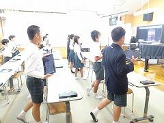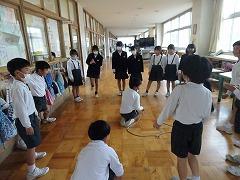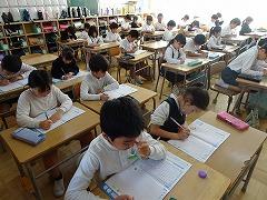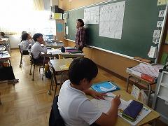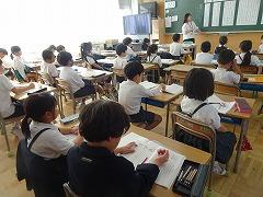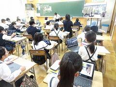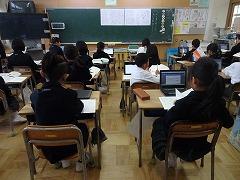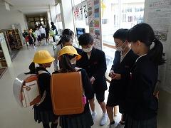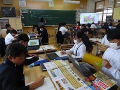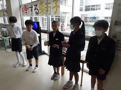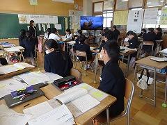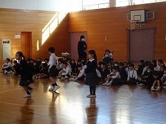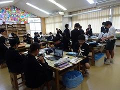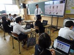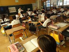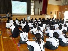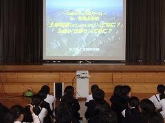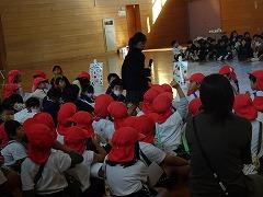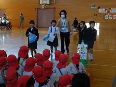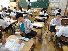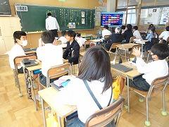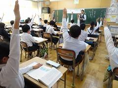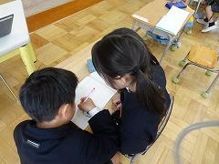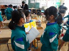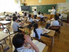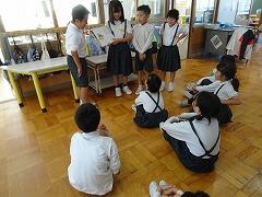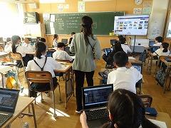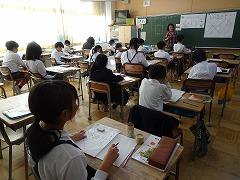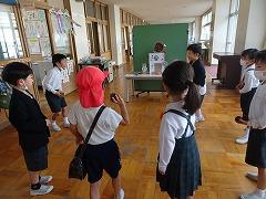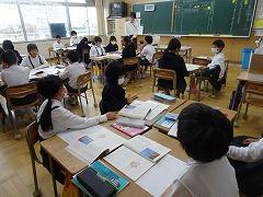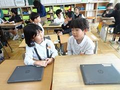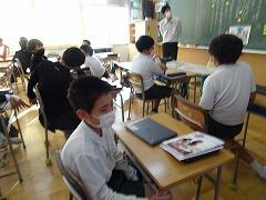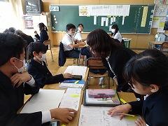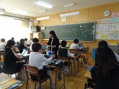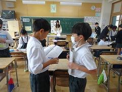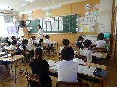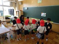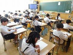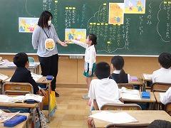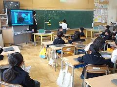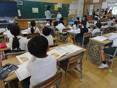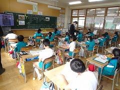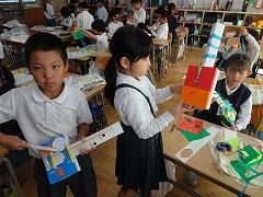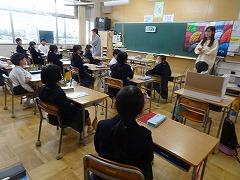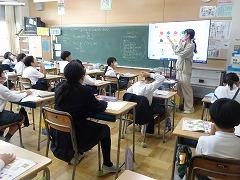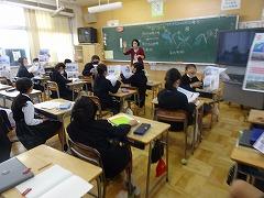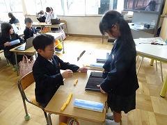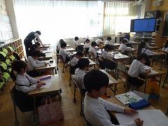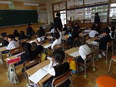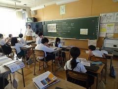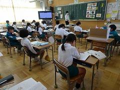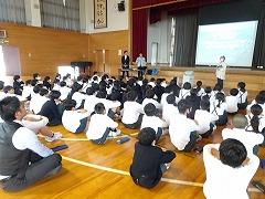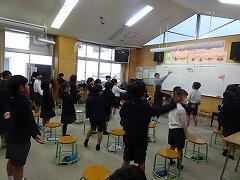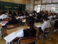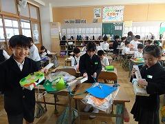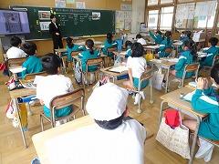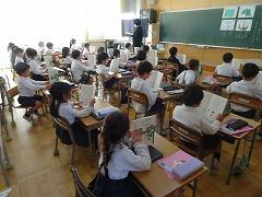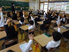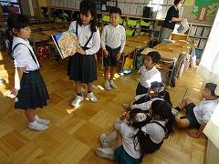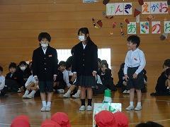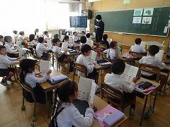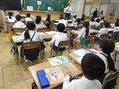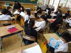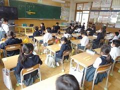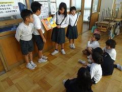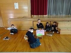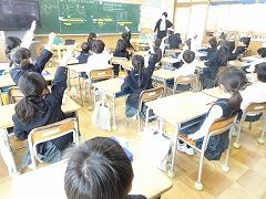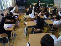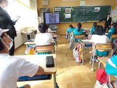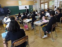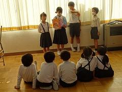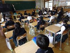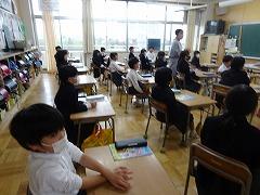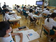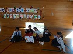 ↓6年生が英語で5年生と交流しました。6年生が地球環境保全に関することからテーマを絞ってプレゼンテーションを作成し、英語でプレゼンテーションを行い、5年生が聞かせてもらいました。途中英語でのクイズもあり、5年生は楽しく参加していました。6年生は一生懸命英語を覚え、伝わるように練習したのですね。