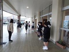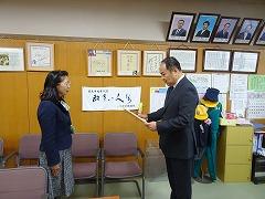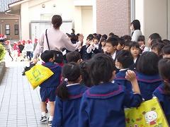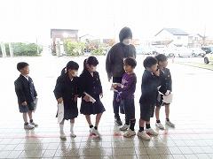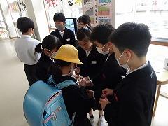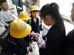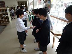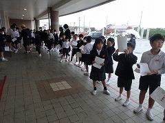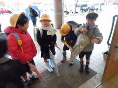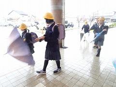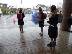 ↓あいさつボランティアのおかげで、雨の日も、元気で明るい気持ちになります。