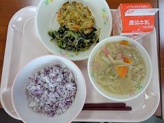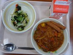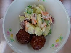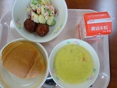 ↑今日は金曜日ですのでパン給食です。バターロール、肉団子、かほっくりサラダ、コーンポタージュでした。
