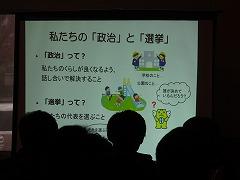 ↑6,7年後には社会人として投票しますので、候補者はどんな考えなのかしっかり聞いて、選挙権を行使してください。