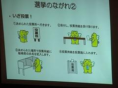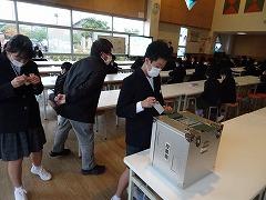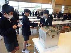 ↑そして、模擬投票を体験させていただきました。候補者の考えをしっかり聞いて選ぶことが大切であると学びました。