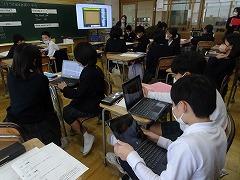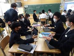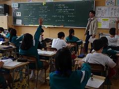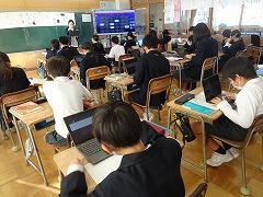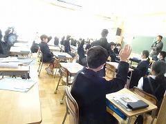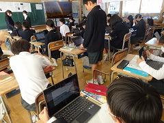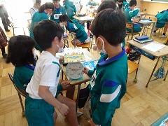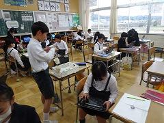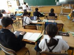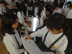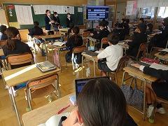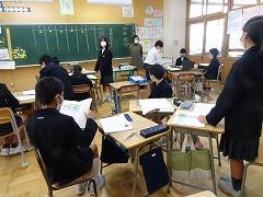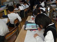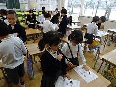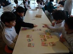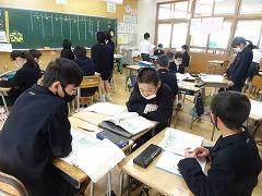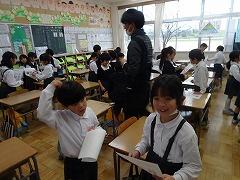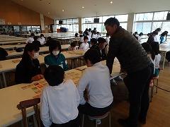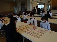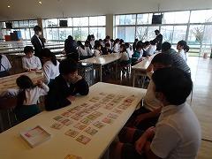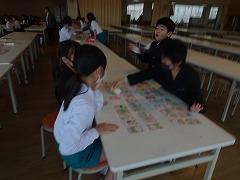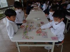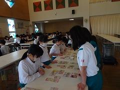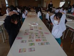 ↓昼休み、津幡かるた大会の練習をしています。津幡かるた遊びを通して、津幡のことをもっと知り、津幡に愛着をもつきっかけになってほしいと思います。