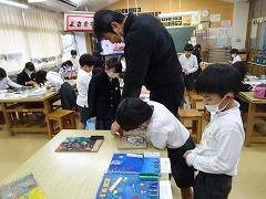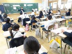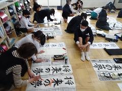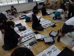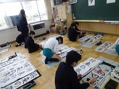 2023年12月12日 19時25分この地域にお住いの書道の日展作家、高桑先生を招聘しまして、書初めのご指導をいただきました。形や筆遣いを直接ご指導いただきました。3年以上、全学級に1時間ずつ、ご指導をいただきます。↓6年生の練習の様子です。