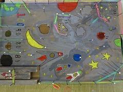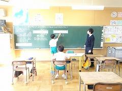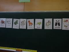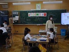 ↓3年生外国語活動 形のお店屋さんでやり取りをしています。どの形のカードが欲しいですか? What do you want ? I want ~・/ How many ?
