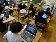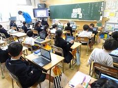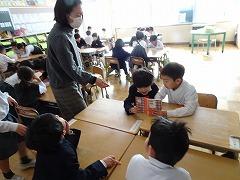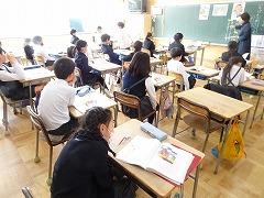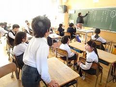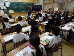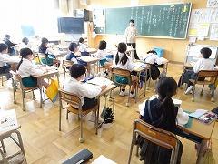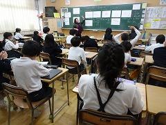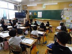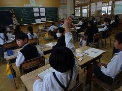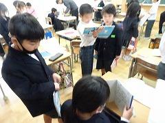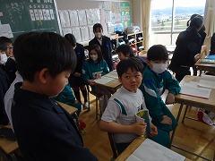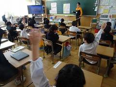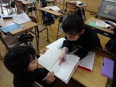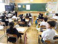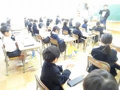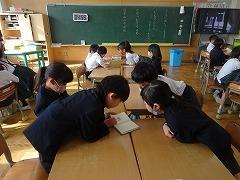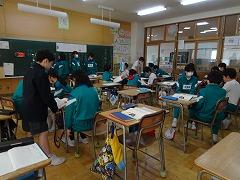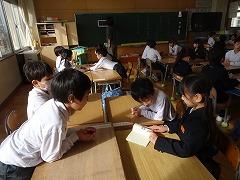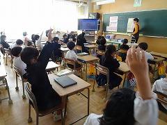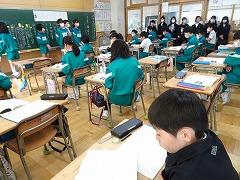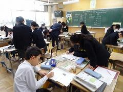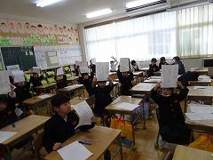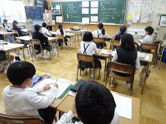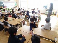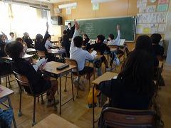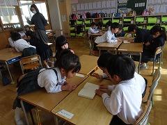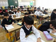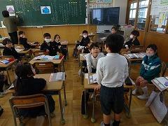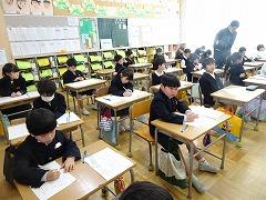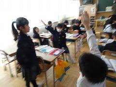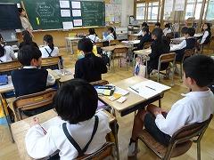 ↓4年生が5年生の国語の授業を見て、学び方を学びました。あと2か月で5年生、スピード感や集中力、対話の内容、だれとでも対話できる人間関係のよさ等、見て学ぶことはたくさんありました。「百聞は一見にしかず」、学んだことをすぐに実践して、さらに高学年に向けて向上していくことでしょう。下級生のお手本になる授業をできるということは、これまで、真剣に学び方を高めてきた成果ですね。