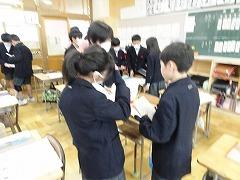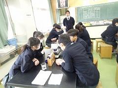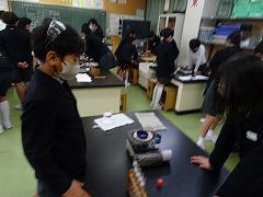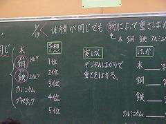 ↓3年理科 体積が同じでも、物によって重さは異なるのかな?実験で、測定を正しく行い、結果を基に、考えたことを交流しました。
