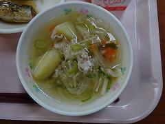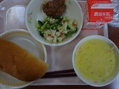 ↑今日の給食は、チーズクッペ、花野菜サラダ、コーンポタージュ、若どりのもも照り焼きでした。6年生のある児童は、「おいしすぎて、もったいないので、ゆっくり味わって食べました」と言っていました。今日もおいしい給食をありがとうございました。