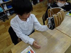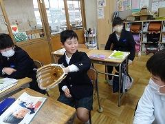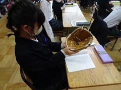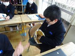 2024年1月19日 16時00分大谷翔平選手のグローブ、今日は4年3組の教室に回っていました。一人一人手にはめて、夢のグローブの感覚を味合わせていただいています。「これなら野球がうまくなりそうだ」、「野球をやってみたい」などと、話していました。