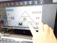 ↓1年国語 たぬきの糸車を読んで一番好きな場面の話し合いです。対話を活性化するために、ピラミッドチャートを用いて、自分の考えがはっきり伝わるように工夫しています。