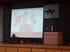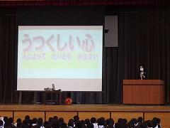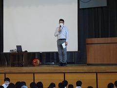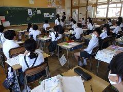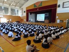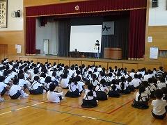 ↓生活のお話では、まず、道路でサッカーをしたりおにごっこをしたりしないというお話をしました。車にボールが当たったり、事故になったり、また用水もあって危険です。公園など広い場所で遊んでください。また、6月の生活目標の「廊下を歩こう」というお話をしまし、全校のみんなと落ち着いて思いやりのある歩き方をすることを約束しました。