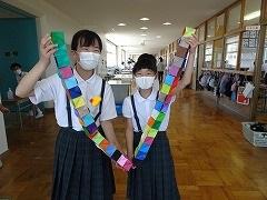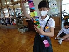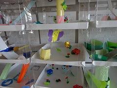 ↓折り紙をつないで、こんな素敵な作品を作ったそうです。どんどん伸びるので驚きました。平面の紙からすごいです。