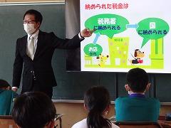 ↓6年生 金沢法人会の方の租税教室を実施しました。税金は何に使われいているのかを教えていただき、津幡町の税金についても知ることができました。最後に、「自分が考える税のよりよい使いみち」を考えました。これは「税の使い道 総選挙」となり、津幡町の方に投票していただくことになるそうです。6年生は租税教室を通して、社会をよくする方法をいろいろ考えることができました。