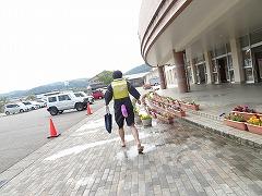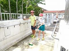 ↑バケツで汲んで、水を出し、デッキブラシできれいに泥や砂を流しました。