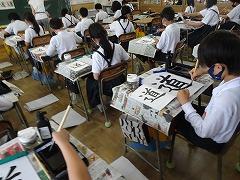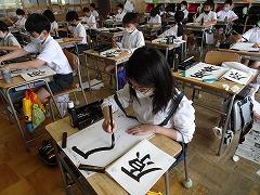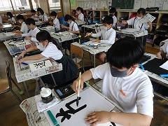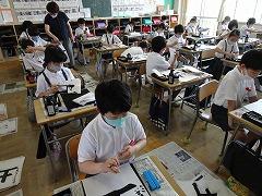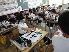 ↑4年生習字 はらい、はねの方向はどこかな お手本を見て丁寧に書きました。