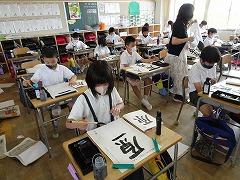 ↑3年 習字を初めて2か月、始筆を正しく書くことができるようになりました。