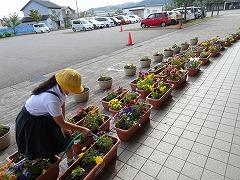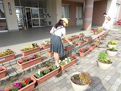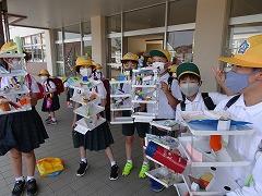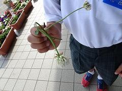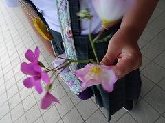 ↑登校中に見つけたクローバーやお花を見せてくれました。植物の水やりで植物もうれしそうです。全校のみなさんなもお花を見て、心に潤いをもってくださいね。