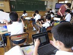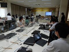 ↑業後は、GIGAスクールのクロームブック研修会を行いました。私たち教員もクロームブックの使い方を一生懸命練習して授業に活用できるようにみんなで研修をしています。まずは使って、分からない所は教え合って条南チームとしてGIGAスクールを推進しています。