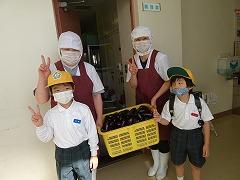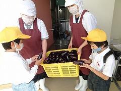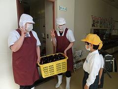 ↑今日の給食に入る、つるつるな「なす」が届きました。新鮮そのものです。今日のどんな料理に入るのでしょうか。楽しみですね。