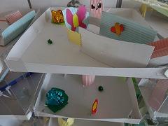 ↑「コロコロころがあれ」大作が策が仕上がりました。4階の部屋をビー玉が転がっていきます。楽しい工夫がたくさんありました。細かい作業ですが、一生懸命作ったことがよくわかります。
