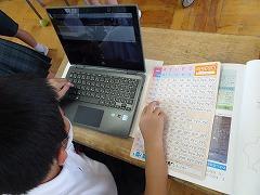 ↑3年社会 津幡町を他の町の人に紹介したいな、何を紹介したいかな クロームブックを使って考え、調べました。ローマ字表を片手に、ローマ字打ちにも挑戦しています。
