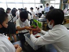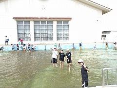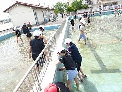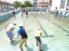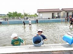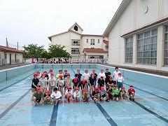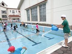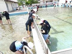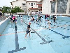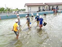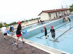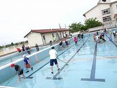 プール掃除をしました。2年ぶりです。6年生が全校のために、一生懸命磨いて、きれいにしてくれました。初めはこんなに泥だらけだったのですよ。オタマジャクシやヤゴもたくさん生息していました。プールの壁もたわしで磨くと、真っ黒だった壁は真っ白によみがえりました。