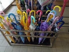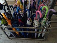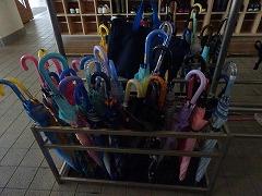 ↑各クラスの傘が、きちんと巻いてひもで留められて傘立てに入っています。心も整っている感じがします。